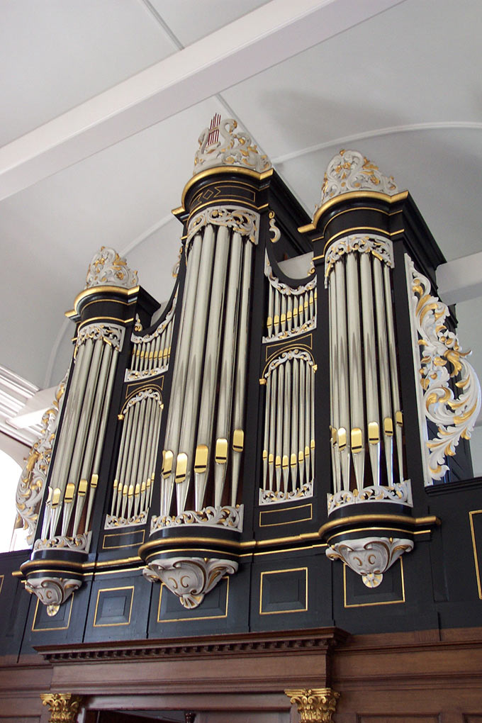 bovenwerk heeft 6 stemmen en het hoofdwerk 9, waaronder een Bourdon 16 voet. De orgelkas is zwart, hetgeen een plechtige uitstraling