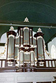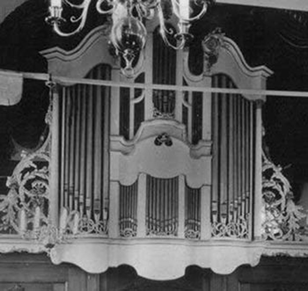 boven de kansel voor het kabinetorgel dat uit de oude kerk werd meegenomen. De vormgeving van het front doet vermoeden dat het in