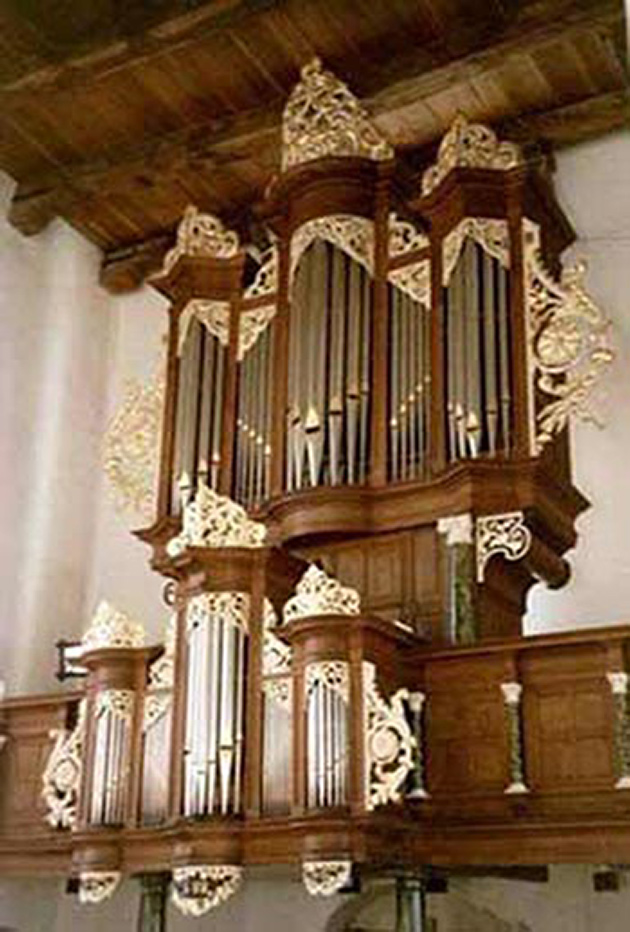 worden bespeeld. Te Anjum, waar we de excursie afsluiten, staat in de (hervormde) kerk een groot Van Dam-orgel uit 1875. Het heeft