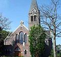 achtkantige ingesnoerde naaldspits, die met leien gedekt is. De toegangsdeur van de kerkingang wordt