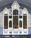 Volledige disposities van alle doopsgezinde orgels in Friesland (vaak met een foto en een overzicht van de geschiedenis van het betreffende
