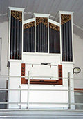 van Dam en Iedema (destijds de nieuwe firmanten van Bakker & Timmenga) geplaatst. De dispositie is: Holpijp 8 vt, Prestant 4 vt, Gemshoorn 2 vt,