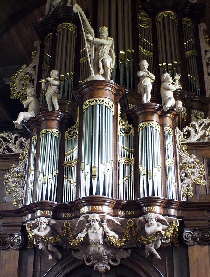 Schnitgerorgel uit 1711. Naar dat laatste orgel gaat natuurlijk vooral onze belangstelling uit. We zagen dat het kerkgebouw een rijke