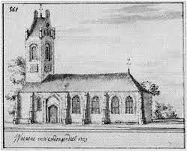 uiterlijk van die kerk. Naast een tekening van J. Stellingwerf uit 1721 is een laat-18e-eeuwse ets waarop duidelijk is te zien dat het