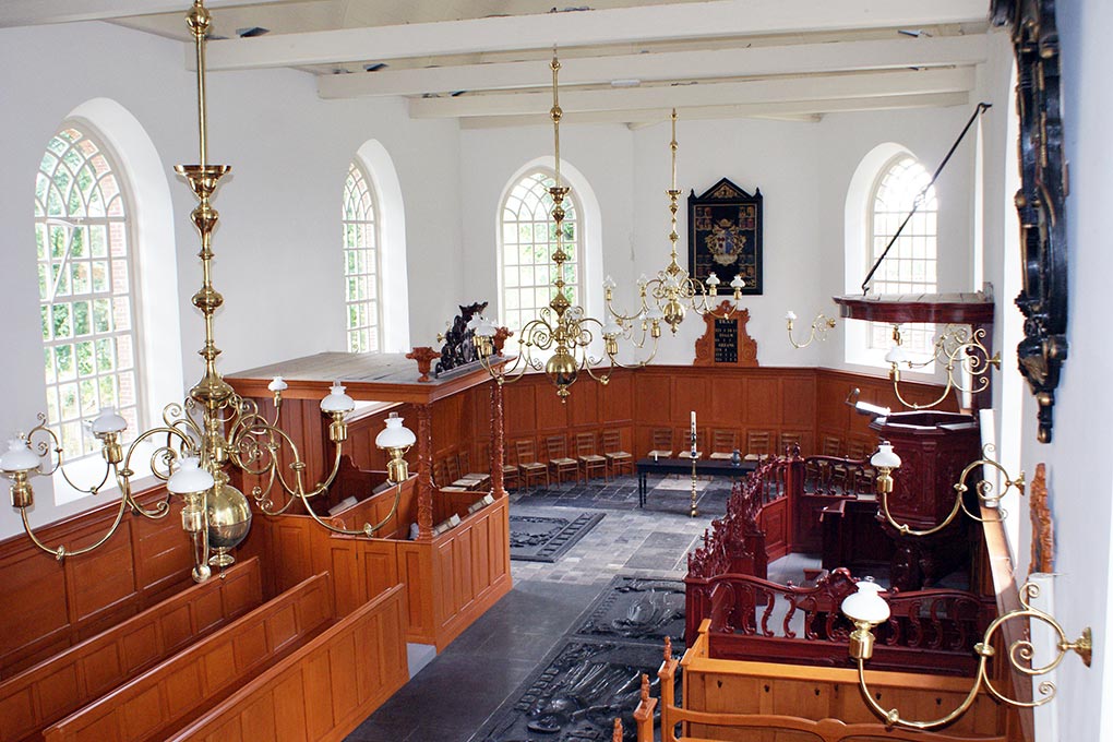 van de schilderende burgemeester Hanso Moll en diens broer Pieter Moll - in de kerk. De huidige centraal gerichte inrichting kwam in 1872 tot stand