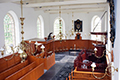 op basis van een door architect Breunissen Troost ontworpen cirkelvormige bankenopstelling rond de preekstoel. Naast de kerk staat een houten klokhuis