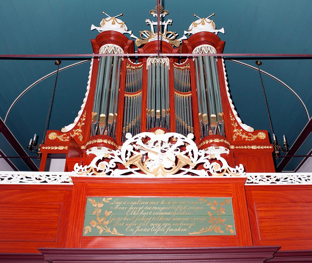 een bijzonder fraaie orgelkas, werd in 1823 gebouwd en is het eerste éénklaviersorgel dat gemaakt is door Luitjen