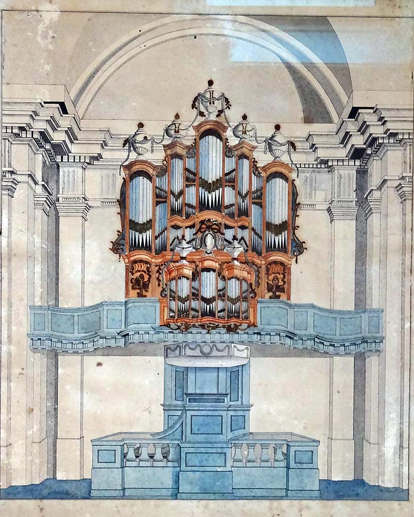 Soms duikt er een verrassing op. Graag maak ik melding van een fraaie tekening van het front van het monumentale orgel, dat Albertus Anthony Hinsz in 1776 bouwde in de Grote Kerk van Harlingen.