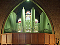 frontpijpen voegt het orgel een kleurrijke noot toe aan het kerkinterieur. Curieus is de plaatsing van de Oboe aan de voorzijde van de windlade van het Swell (direct achter de jaloezieën),