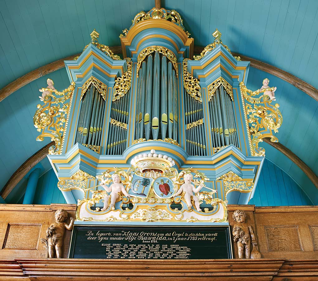 Schwartzburg-orgels door Jacob Sydses Bruinsma en/of Jaan Oenema). Hetzelfde geldt voor het rugstuk van de orgels dat de