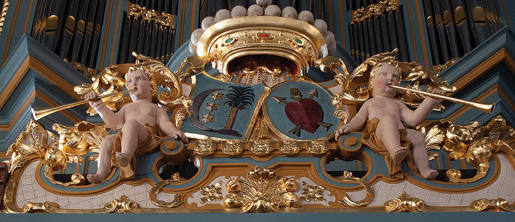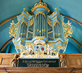 De orgelkas werd in de oorspronkelijke kleuren geschilderd.